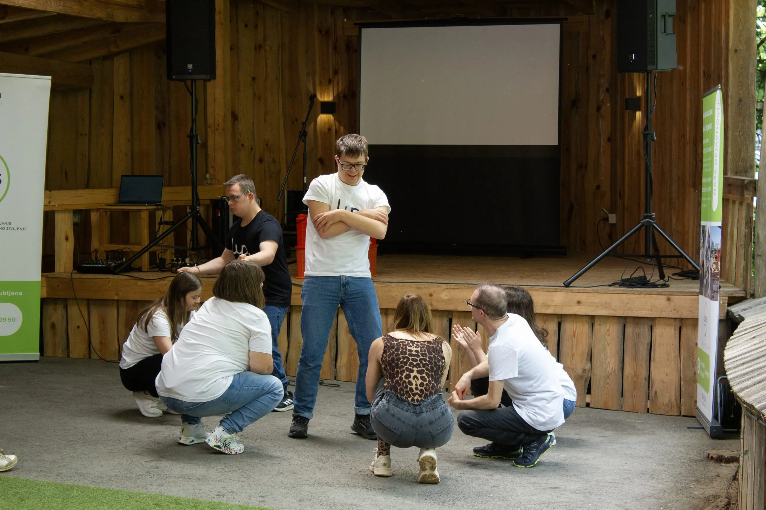 Dogodek je čudovito otvoril Rudi Bučar – glasbenik, pevec in kantavtor, ki se nam je prostovoljno pridružil in s svojim glasom pričaral prav posebno vzdušje. Sledilo je predavanje za osebne asistente, ki sta ga pripravila psiholog, psihoterapevt in komik Nejc Šmit skupaj z Dinom Kapetanovićem. Z obilico humorja sta poskrbela za smeh, sprostitev in nova spoznanja. Medtem so naši nepogrešljivi prostovoljci poskrbeli za animacijo varovancev. V sodelovanju z Malim Ganešo pod vodstvom Maje Podpečan smo izvedli čarobno pravljično jogo. Poleg tega so udeleženci igrali družabne igre, ustvarjali, se pomerili v različnih športnih aktivnostih in se zabavali tudi ob igri Štrbunk.